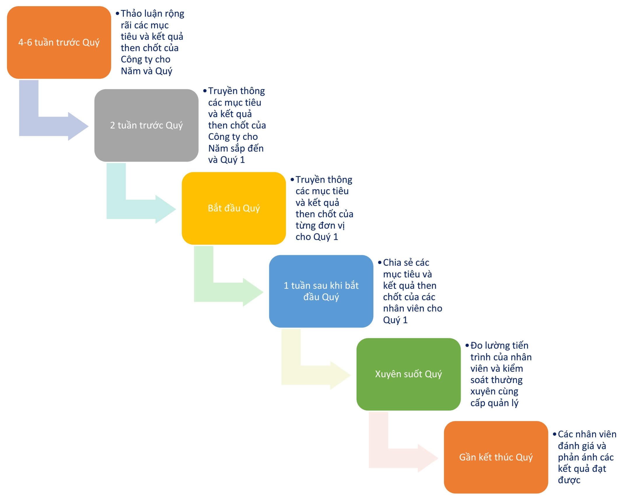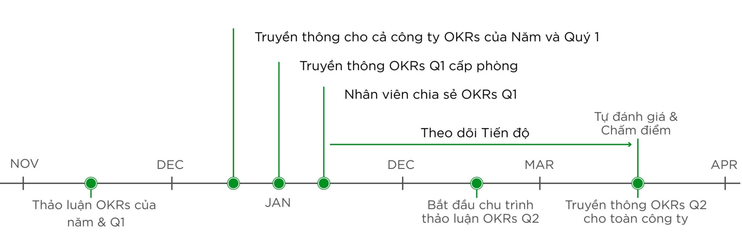 Chu kỳ của chương trình OKRs được minh họa ở hình 7.