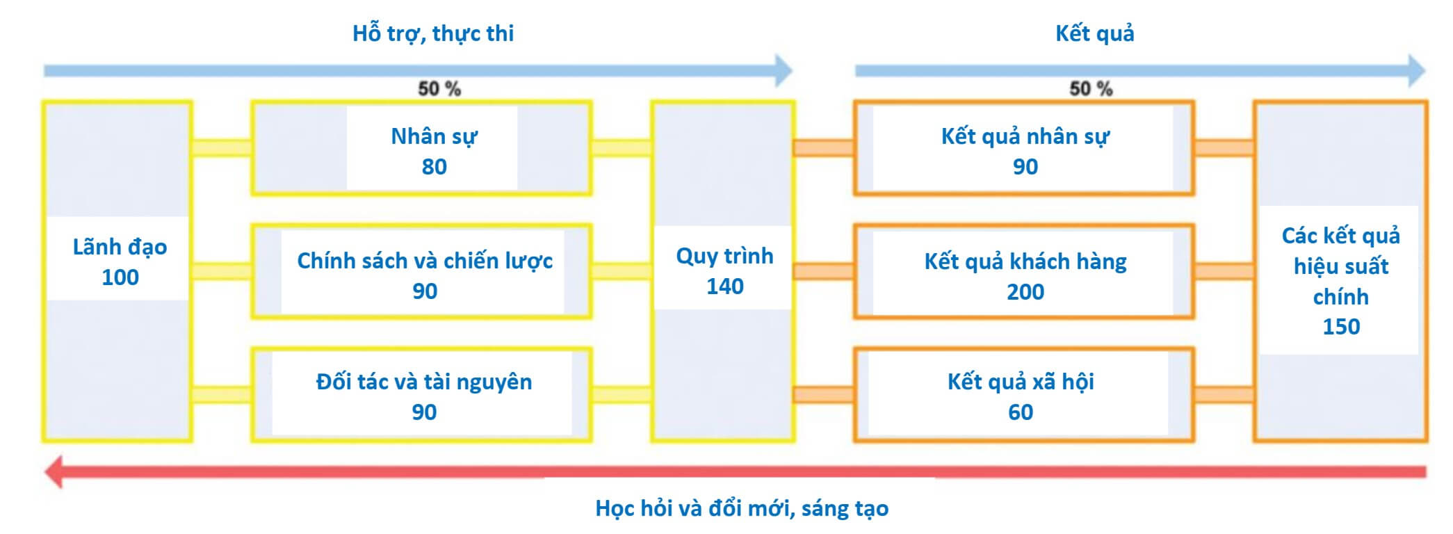 Mô hình ưu việt EFQM của Châu Âu (EFQM-2013) được minh họa ở hình 6. Đây là mô hình thường được các tổ chức áp dụng kết hợp với mô hình thẻ điểm cân bằng BSC.