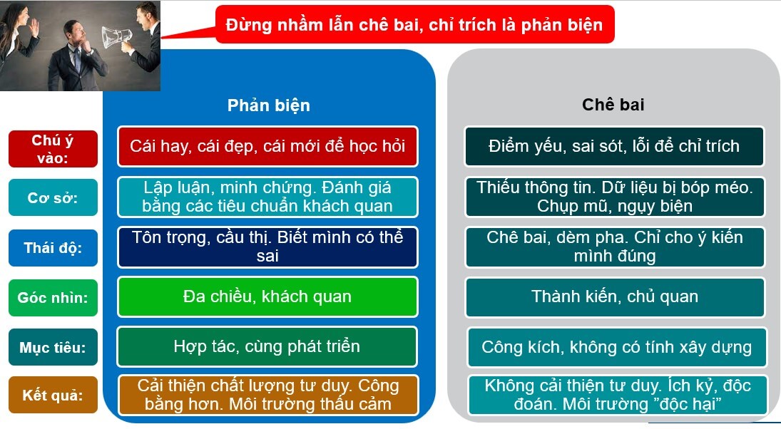 Sự khác nhau giữa tư duy phản biện và sự chỉ trích, chế bai: